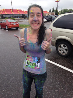 - Eu e a Bruna participamos da Color Vibe!! Aquelas corridas em que as pessoas ficam se jogando tinta rs foram 5K e eu quase morri hahahahha tava chovendo muito, um dia bem feio mesmo, e tivemos que acordar super cedo, mas foi boa a experiencia. Agora o malabarismo pra não sujar o carro do host da Bruna que quase que não deu certo rs Mas na minha opiniao, o melhor mesmo, foi a cara da minha kid quando me viu entrando pela cozinha! hahaha foi muito muito muito engraçada a cara de descrença dela rs
